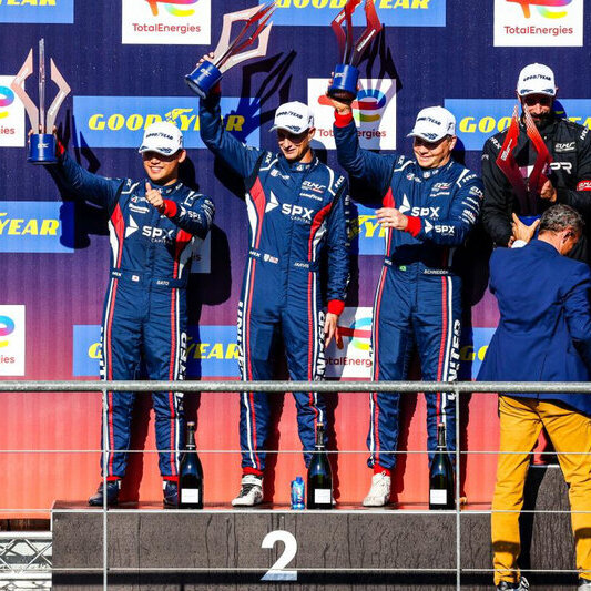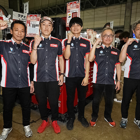 タイヤ交換の作業時間を短縮するために開発したTONE の各種ツールは、8 耐という一大イベントでクラス優勝という偉業に貢献したのである。