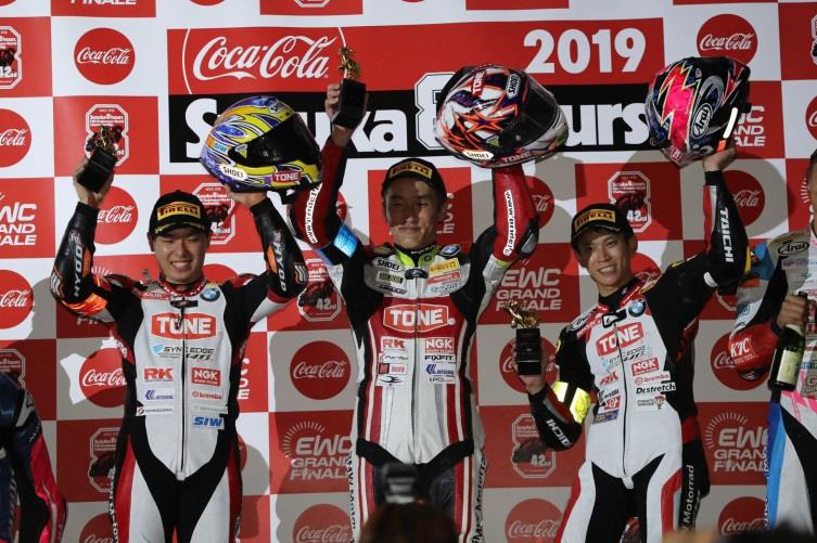 TONE RT SYNCEDGE4413 は今年の鈴鹿8耐総合14位で、悲願のSST(スーパーストック)クラス優勝を成し遂げ、既に来年の鈴鹿8耐への参戦権は得ています。