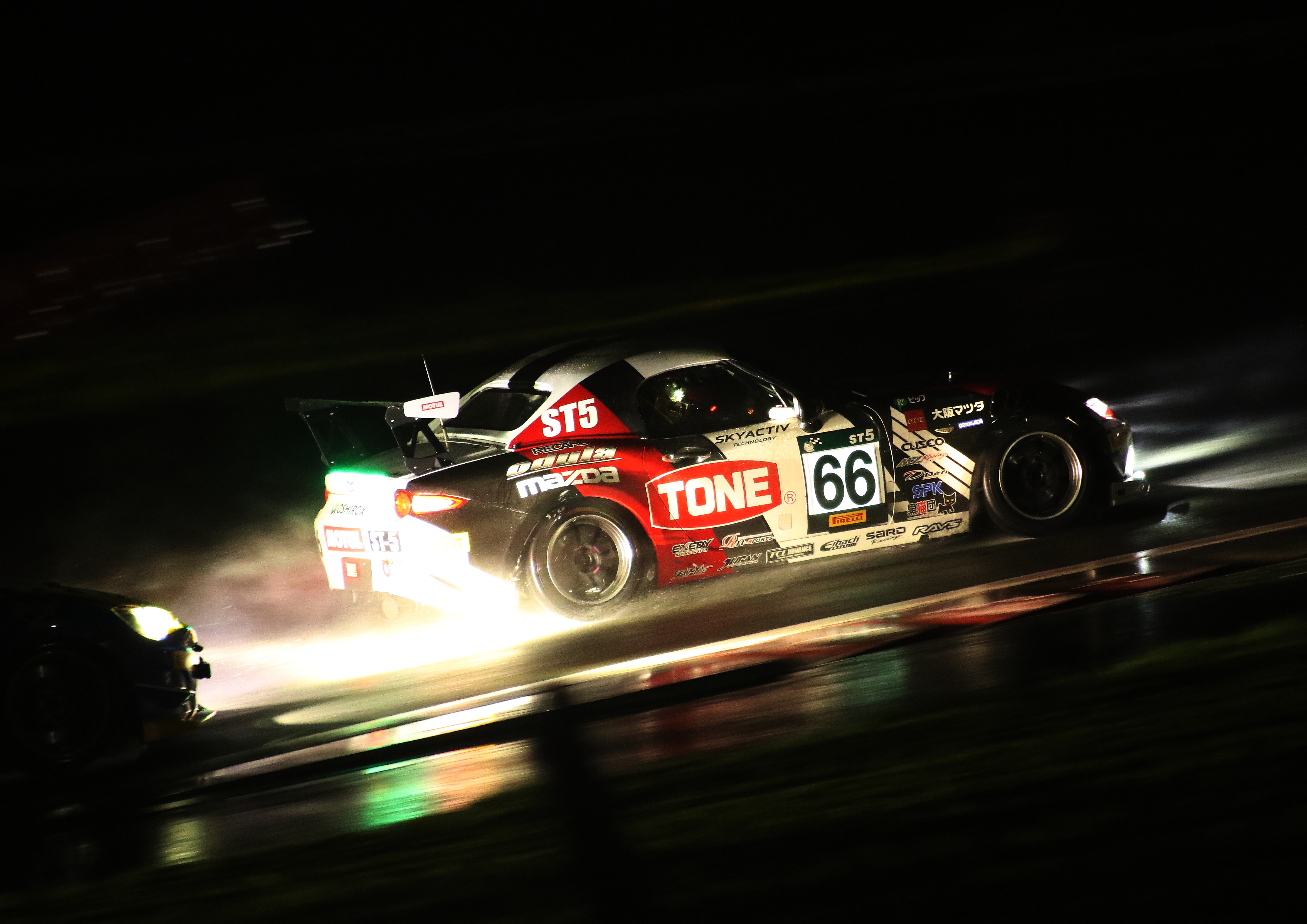 スーパー耐久2020開幕戦が「NAPAC富士SUPER TEC 24時間レース」として9月5日、6日に富士スピードウェイで開催され、私はチーム「TONE OVER DRIVE」から66号車「odula TONE Idia ロードスター」を駆ってST-5クラスに出場しました。コロナ禍で日程が大幅にずれ込んで開幕戦がいきなりの富士24時間耐久となり、さらに台風10号の影響を受けて悪天候で大荒れのレースになりました。